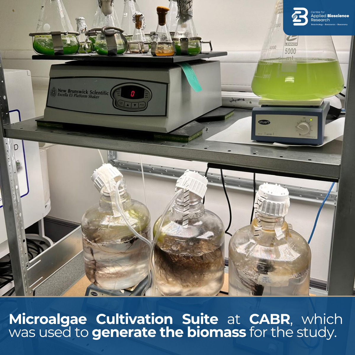 CABR also now has a Microalgae Cultivation Suite for upscaled biomass production, supporting future projects at higher Technology Readiness Levels (TRLs). The biomass used in this study was generated in environmental growth chambers at a small scale.